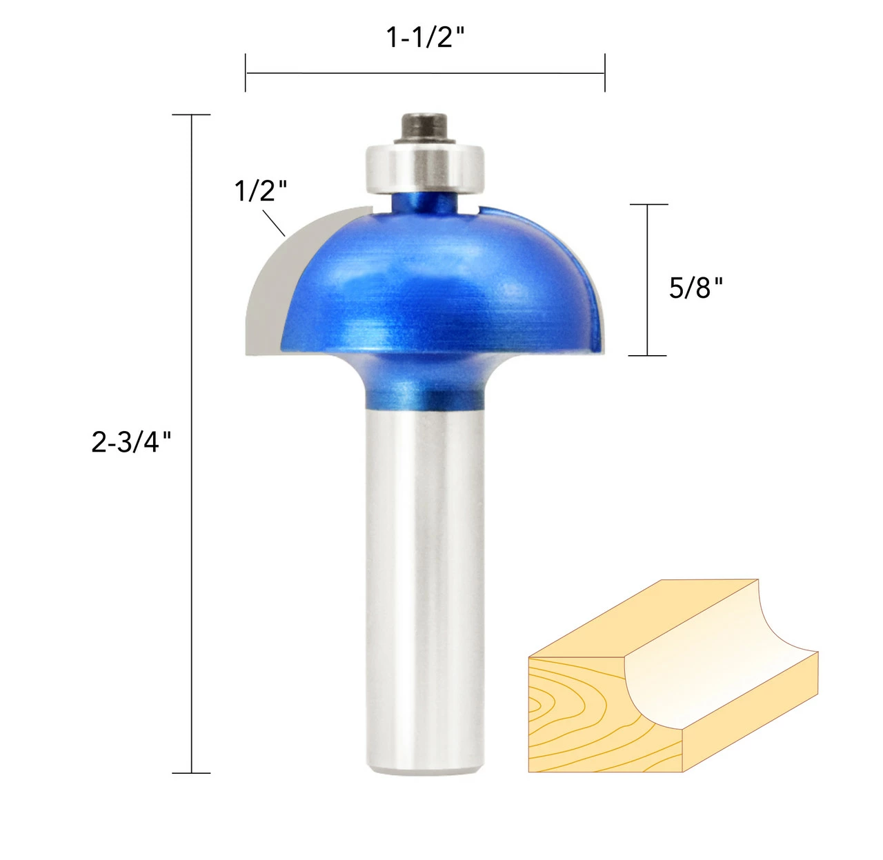 Cove bits are perfect for creating decorative edges or making simple drawer and door handles. With the enclosed ball bearing guide, it’s also used to create convenient finger pulls .Ideal for use on all composites, soft & hardwoods.