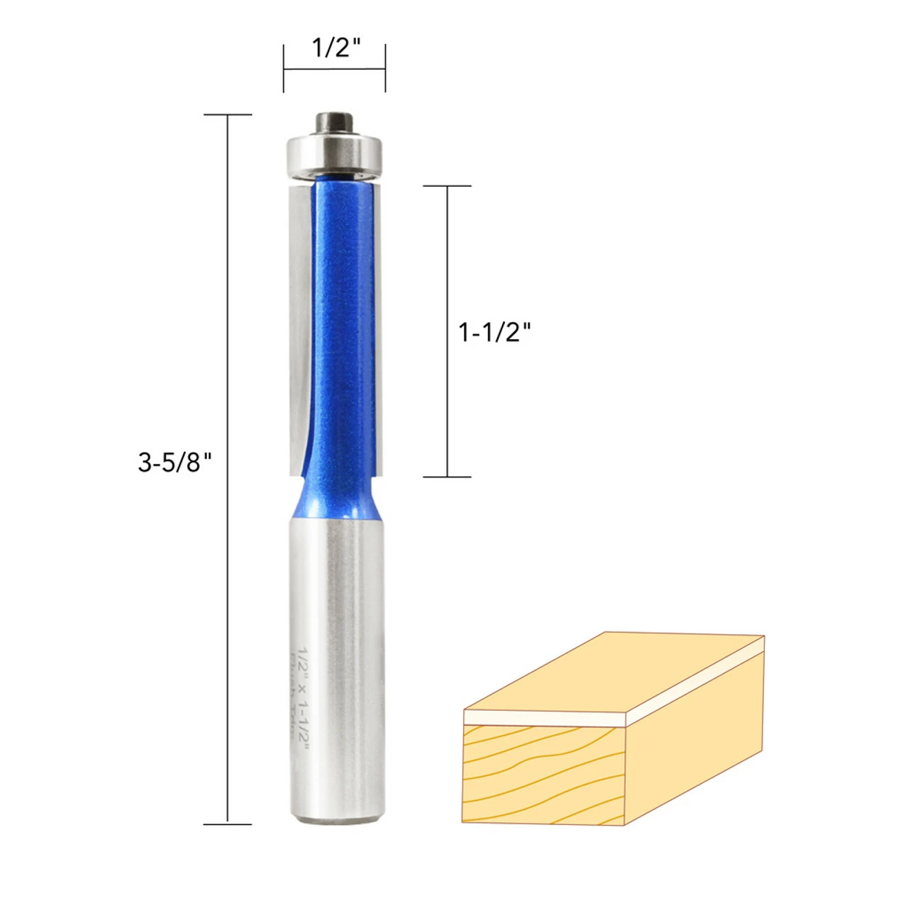 Flush trim bits are designed for accurate trimming and template work on solid wood or laminates. Two flutes makes for accurate and fast cutting.