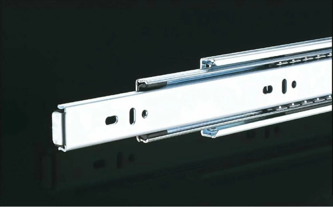 For the ultimate in drawer hardware, these Full Extension Drawer Slides support up to 100 pounds and feature multiple ball bearings for smooth operation. These Full Extension Drawer Slides measure 24″ x 1/2″ x 1-3/4″ and include left and right-hand slides.