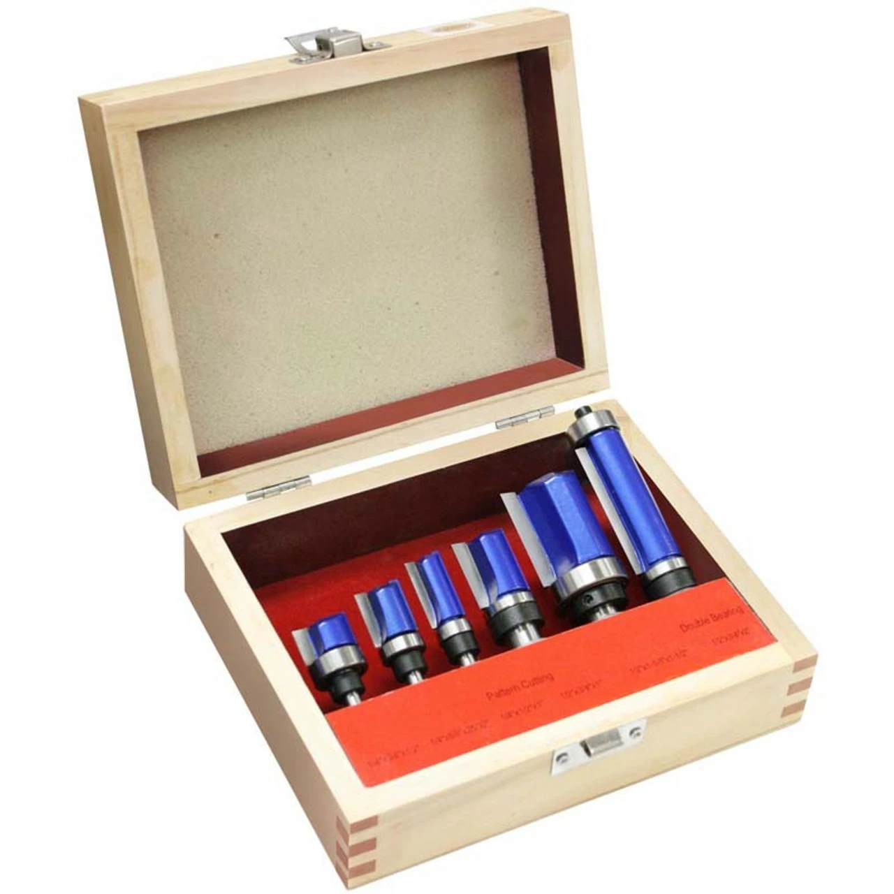 This set of six pattern bits are useful in almost any shop. These bits are perfect for working with a pattern to make multiple, accurate parts. Bits come in 1/4″ & 1/2″ shank.