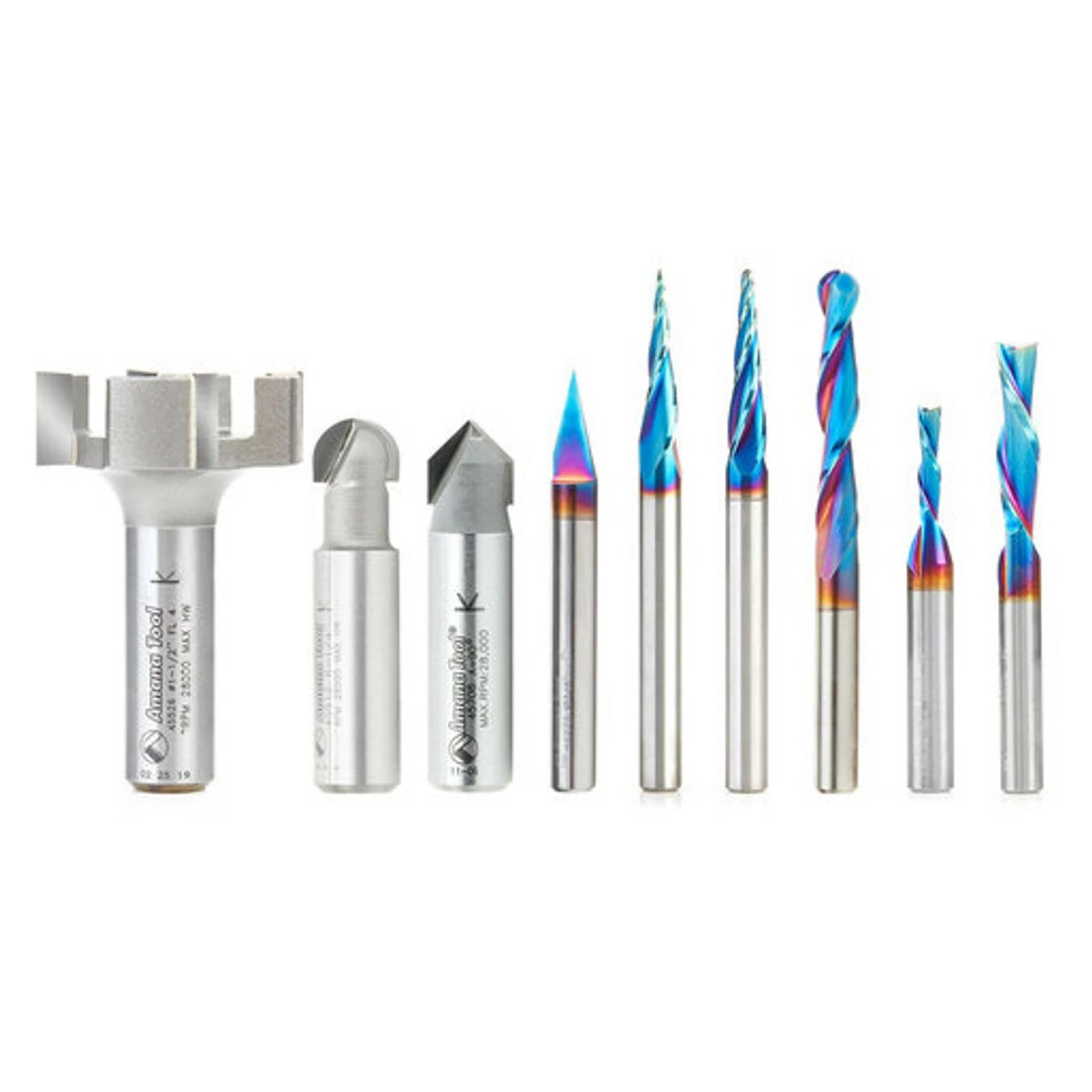 The ABS900 9pc bit set is for the most demanding signmaking, lettering and engraving. Designed for creating signs and other CNC projects in a variety of materials. Each router bit is manufactured from Amana’s exclusive grade carbide according to stringent quality standards.