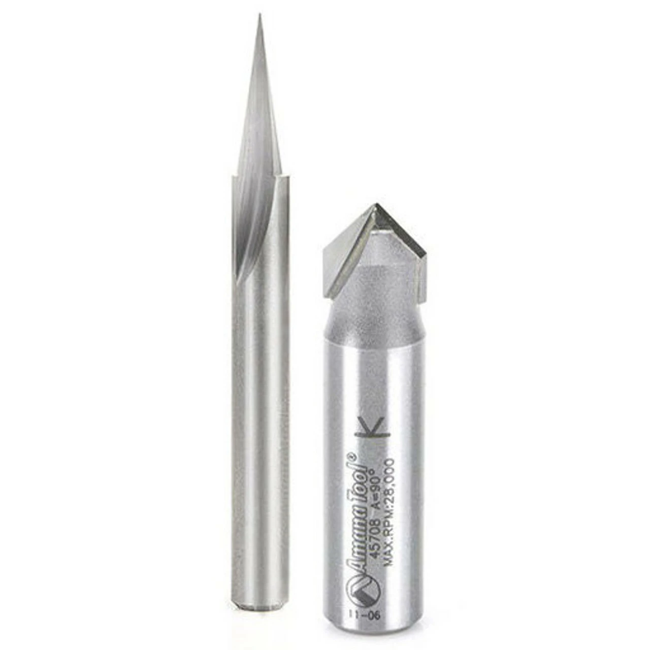 The Axiom ABS-305 Sign-making Bit Set includes the two most popular lettering and veining bits. Use the 90 degree V-groove bit with Vectric’s ‘Vcarve” tool path function to produce crisp, square corners on letters in nearly any font and size you choose. Add small characters and detail, or add a signature to your work by installing the razor-sharp Carving Liner.