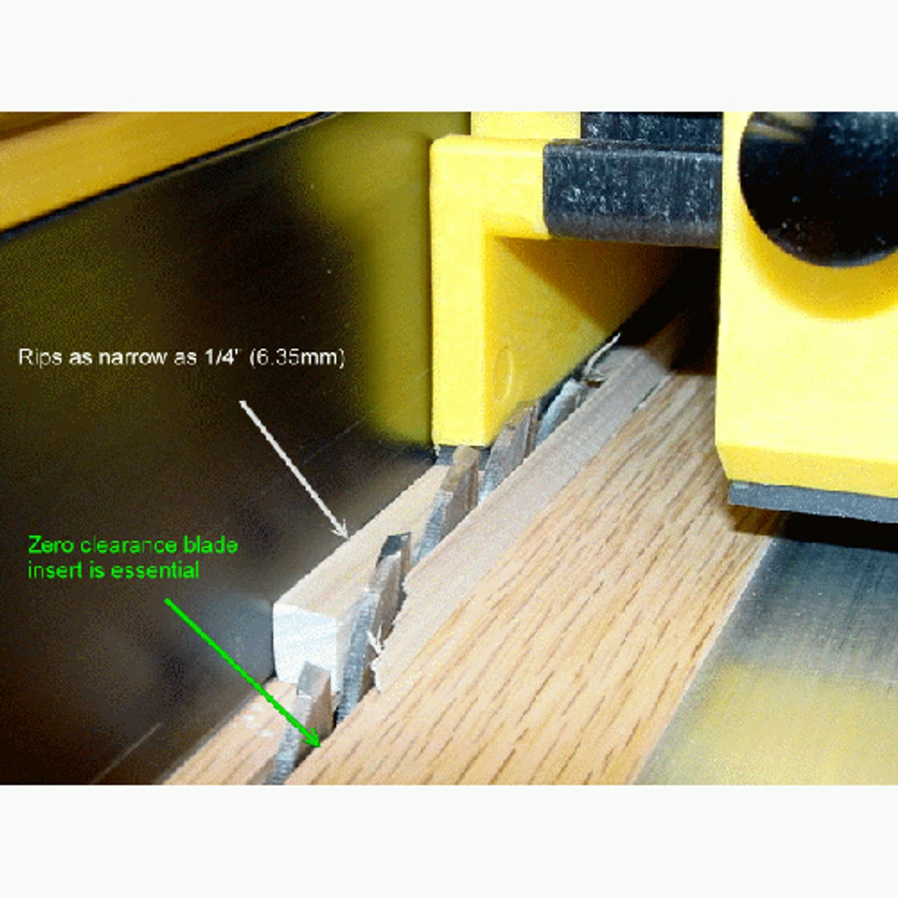 Cutting small pieces on the table saw just got safer. Make precise accurate cuts safely with the GRR-Ripper without moving the fence. Make consistent quality rips as thin as an 1/8″ with the optionalΒ 1/8″ Leg AccessoryΒ all day long with consistent dimension and without burning.