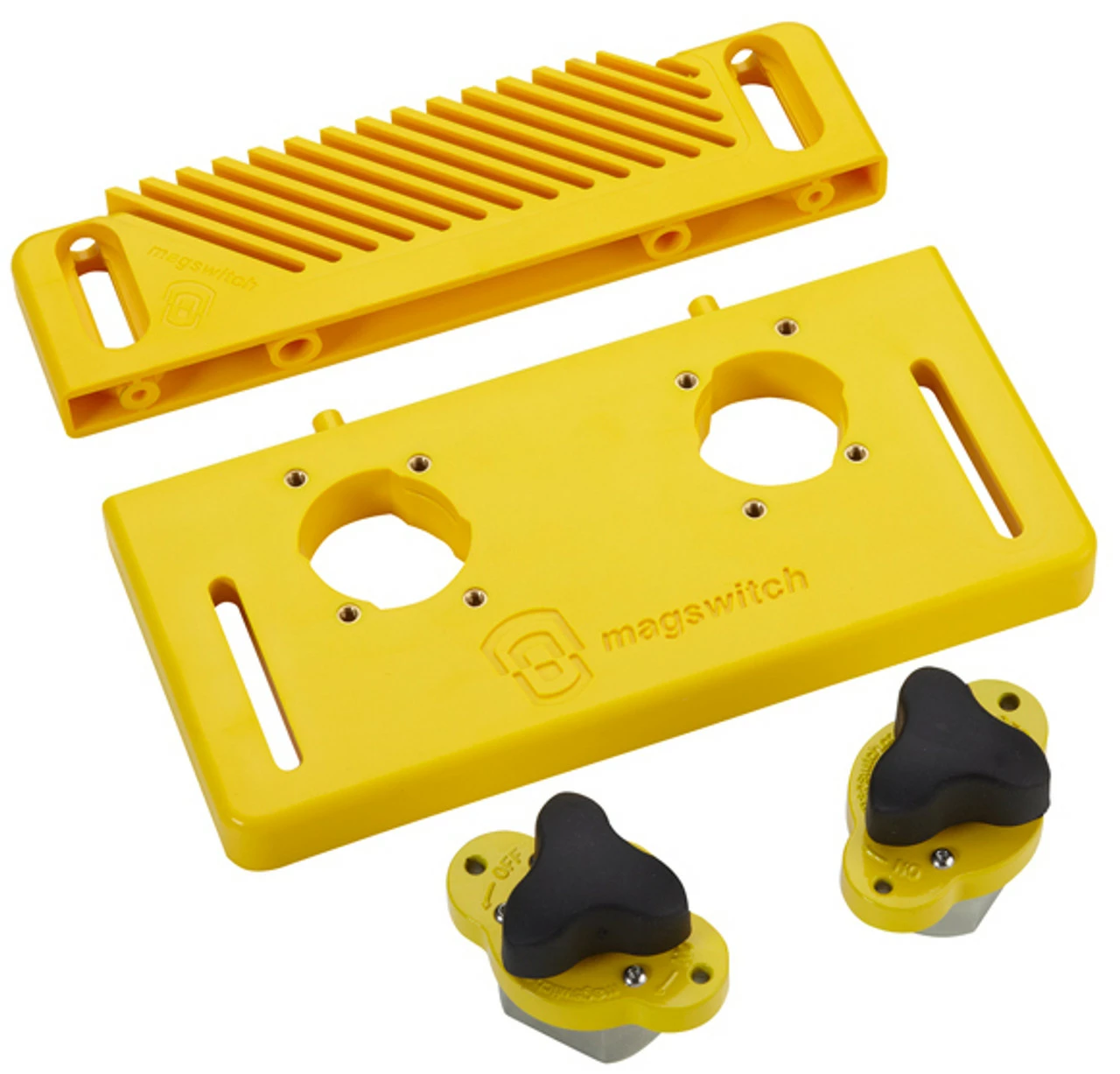 The Starter Kit comes complete with the Reversible Featherboard Attachment, the Universal Mounting Base and two MagJig 150’s. Once you have this tool, get all the other great tool attachments and simply mount to the base as needed. Features core advantages of Magswitch including fast, strong set up anywhere on a steel table or cast Iron fence. Not limited by the miter slot. Featherboard is reversible for left and right hand feeds. Accommodates the Vertical Featherboard Attachment for an added dimension of safety and protection against kickbacks. Low profile design for use on your smallest tables.