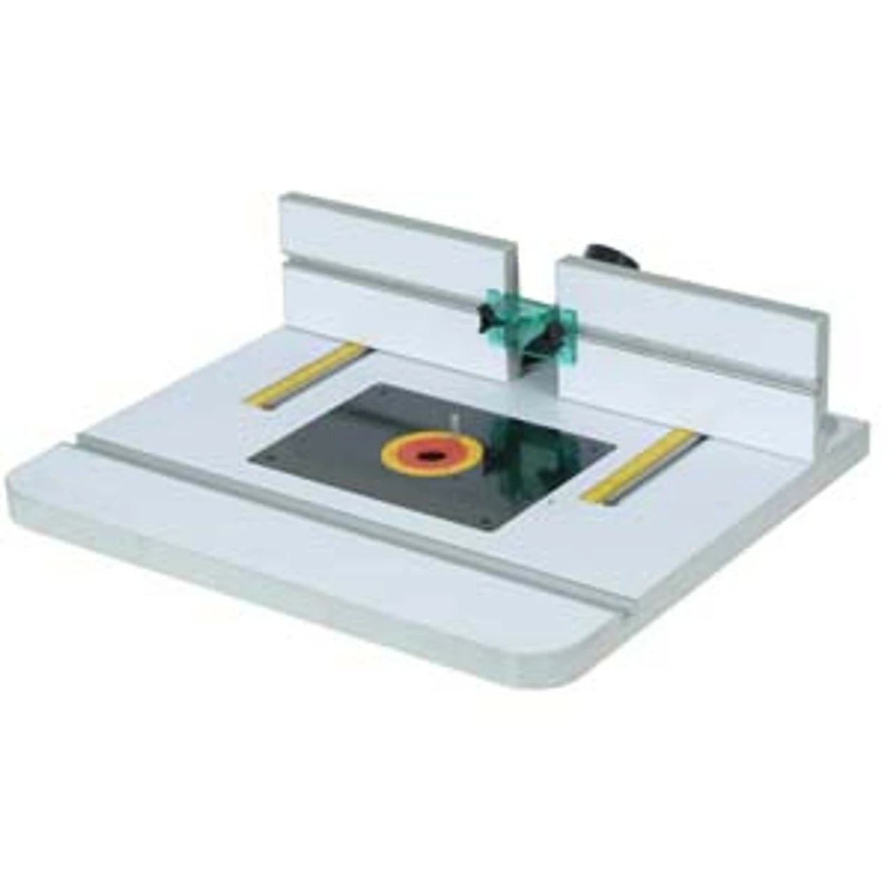 This router table can handle it all. The table measures 27″ x 23 1/2″ x 1 3/8″